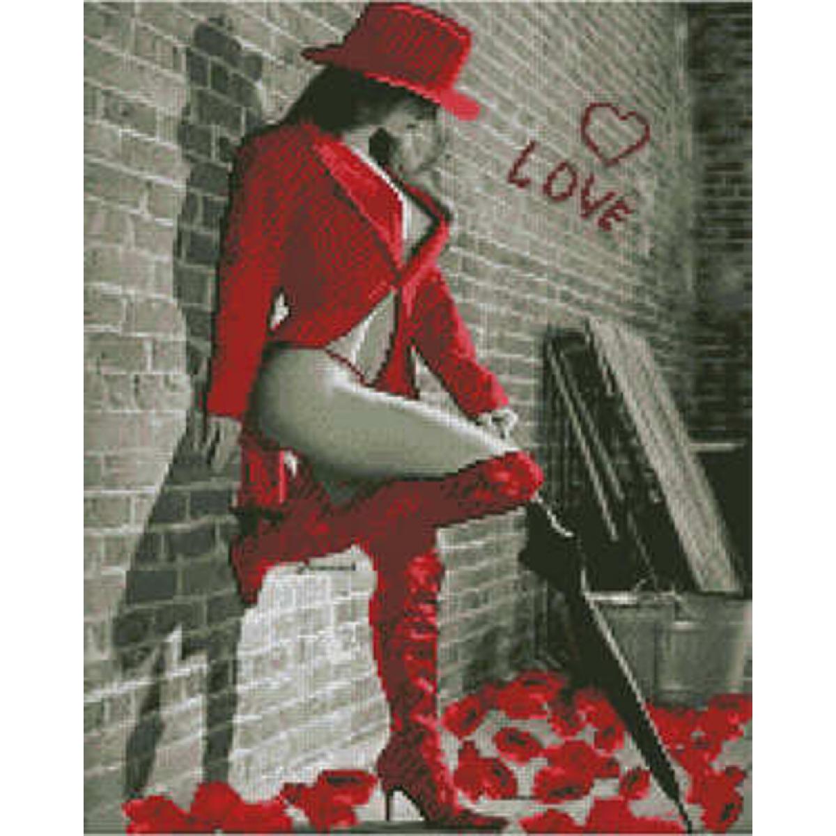 Алмазная картина Strateg ПРЕМИУМ Девушка в красном размером 40х50 см (L-207)