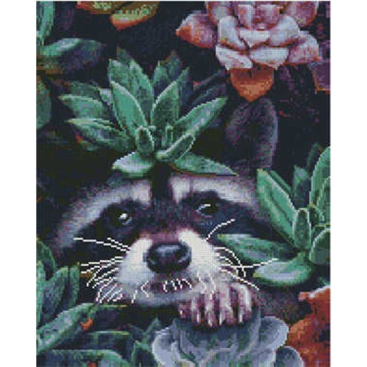 Алмазная картина Strateg ПРЕМИУМ Енотик в цветках размером 40х50 см (L-266)