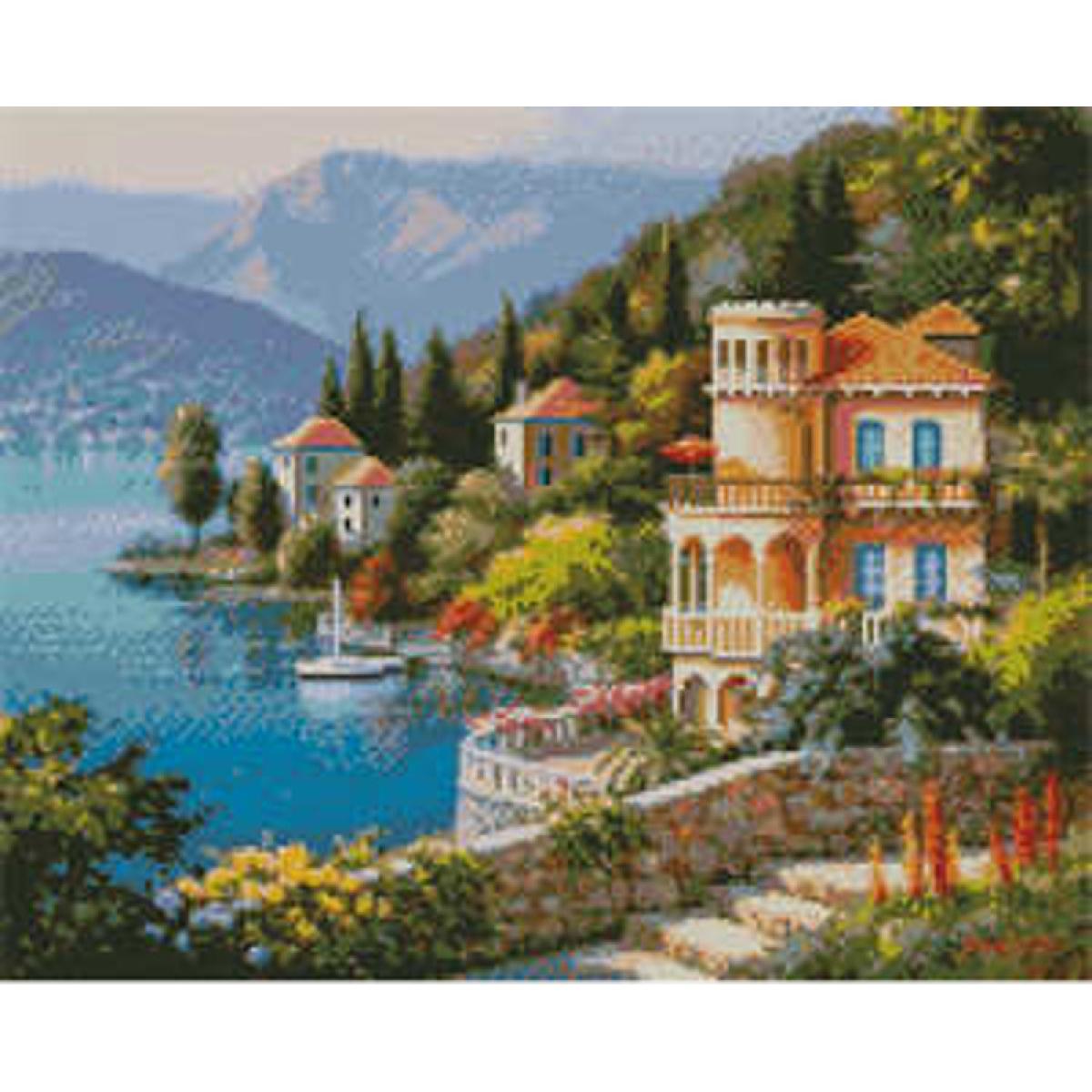 Алмазна картина Strateg ПРЕМІУМ Місто на березі розміром 40х50 см (L-324)<\/p>\n