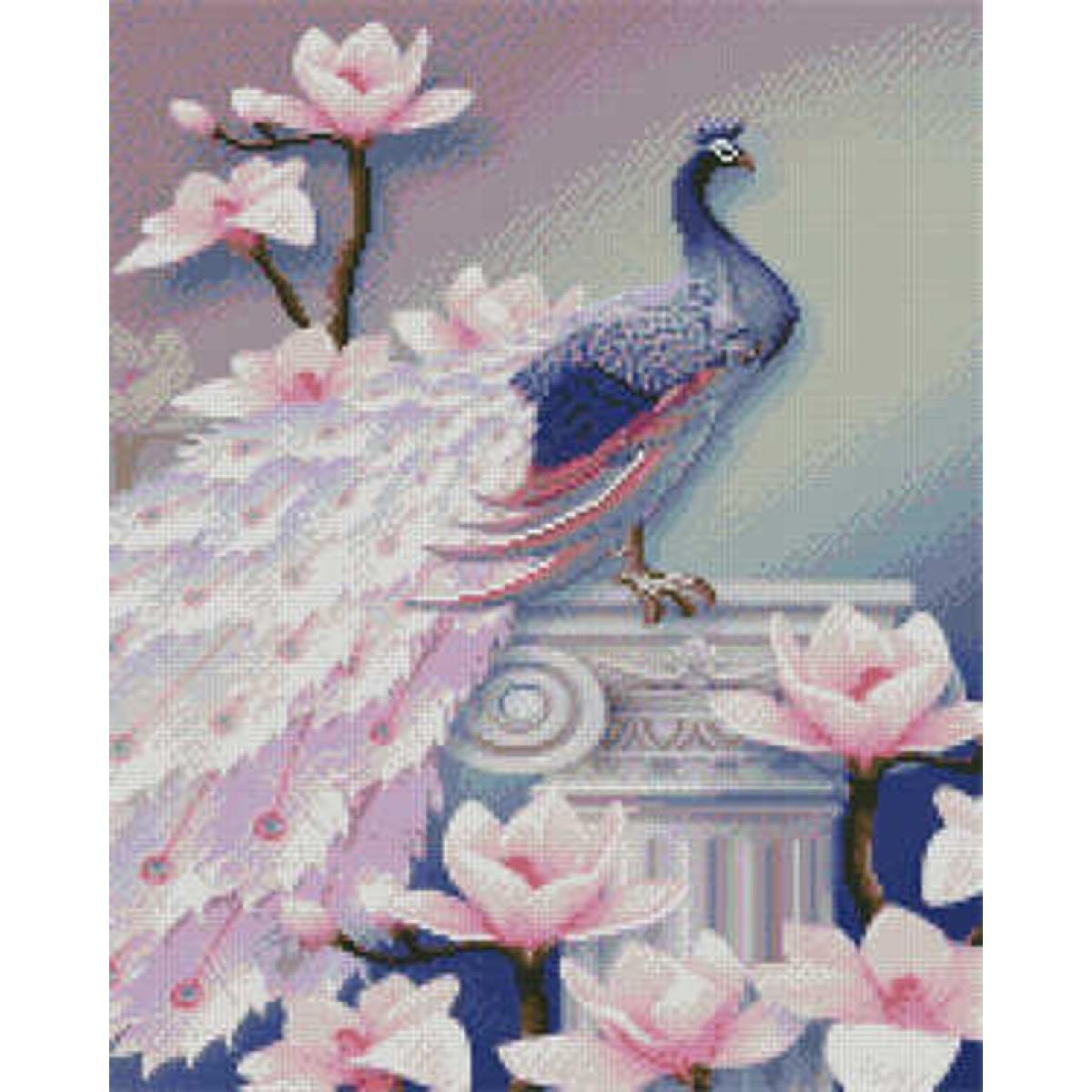 Алмазная картина Strateg ПРЕМИУМ Павлин и магнолии размером 40х50 см (L-224)<\/p>\n