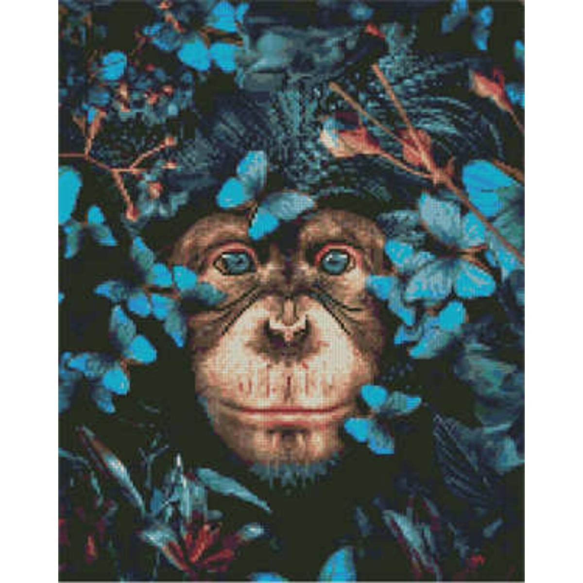 Алмазная картина Strateg ПРЕМИУМ Шимпанзе с бабочками размером 40х50 см (L-009)