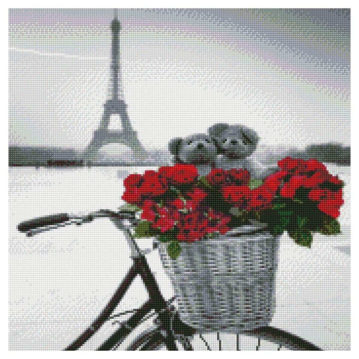 Алмазна мозаїка Strateg ПРЕМІУМ Ведмедики у Парижі 50х50 см GA0015
