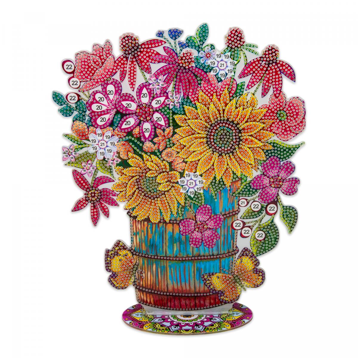 Алмазна мозаїка Strateg ПРЕМІУМ Букет квітів на підставці розміром 30х30 см (BJP21)