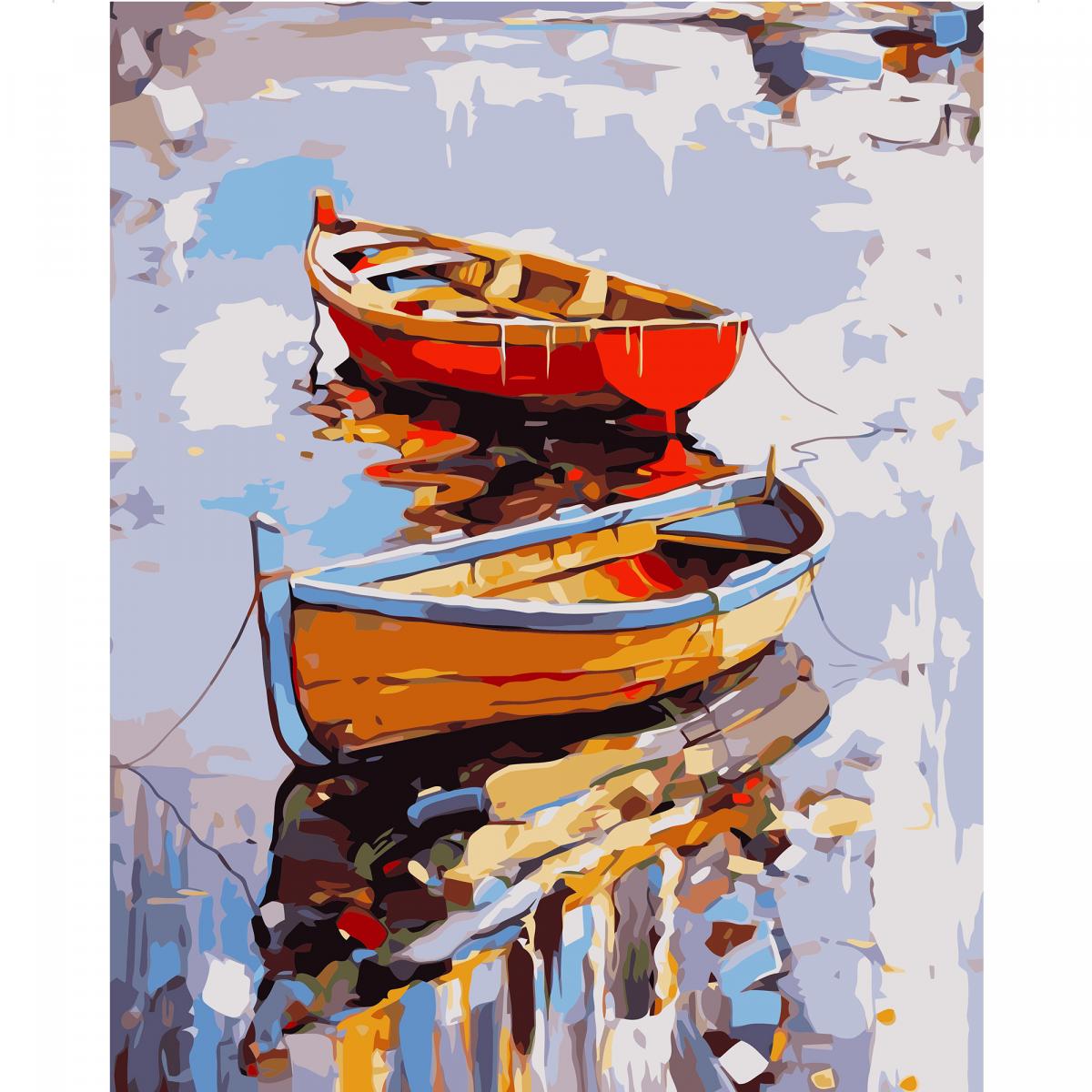 Картина за номерами Strateg ПРЕМІУМ Самотні човни з лаком розміром 40х50 см VA-0995