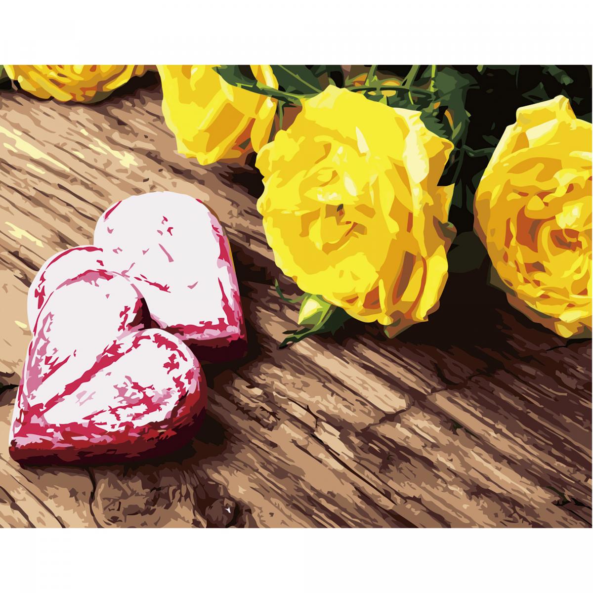 Картина за номерами Strateg ПРЕМІУМ Жовті троянди з лаком розміром 40х50 см VA-2672