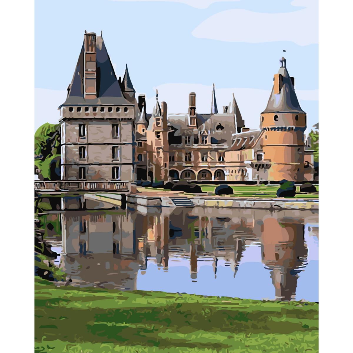 Картина за номерами Strateg ПРЕМІУМ Маєток на озері з лаком розміром 40х50 см SY6157<\/p>\n