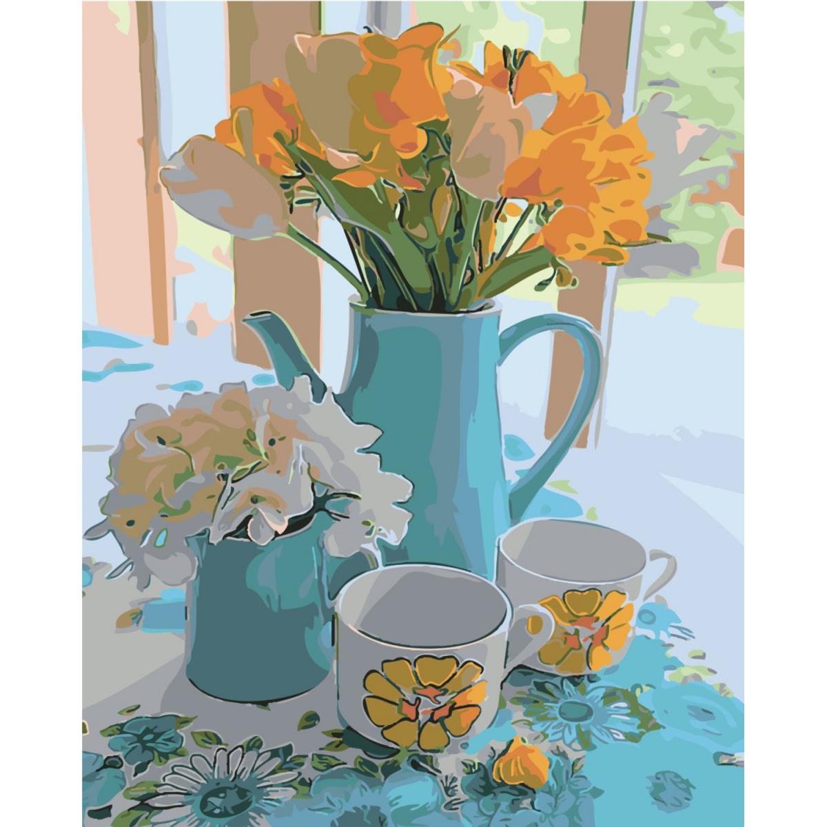 Картина за номерами Strateg ПРЕМІУМ Ранкові квіти з лаком розміром 40х50 см SY6424<\/p>\n