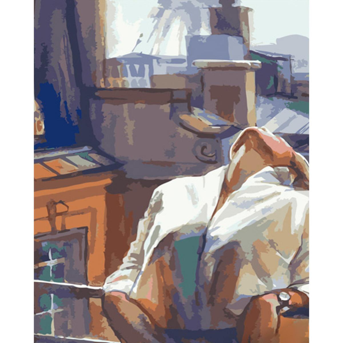 Картина за номерами Strateg ПРЕМІУМ Дівчина на балконі розміром 40х50 см (GS674)<\/p>\n