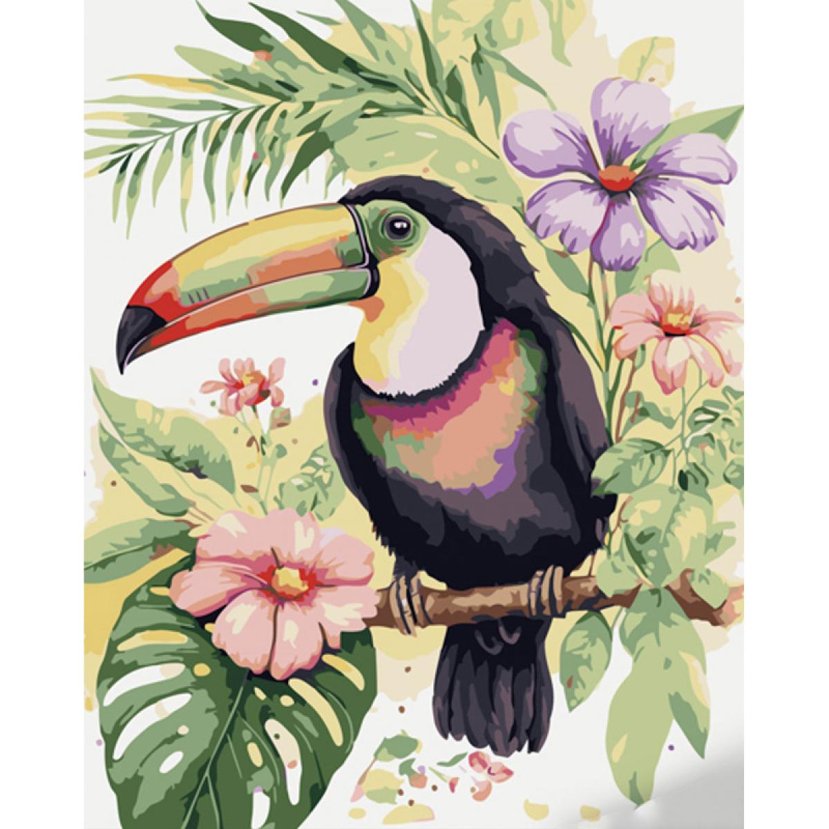 Картина за номерами Strateg ПРЕМІУМ Акварельний тукан з лаком та з рівнем розміром 40х50 см (GS1533)<\/p>