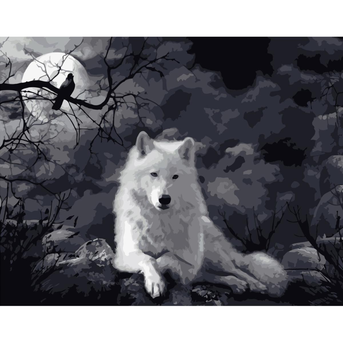 Картина за номерами Strateg ПРЕМІУМ Білий вовк розміром 40х50 см (DY245)