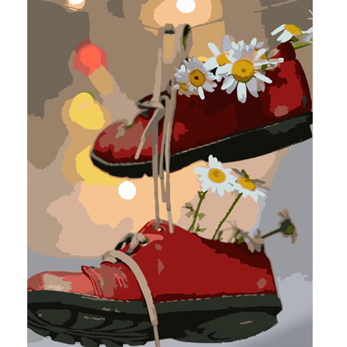 Картина за номерами Strateg ПРЕМІУМ Черевики з ромашками розміром 40х50 см (HH061)<\/p>\n