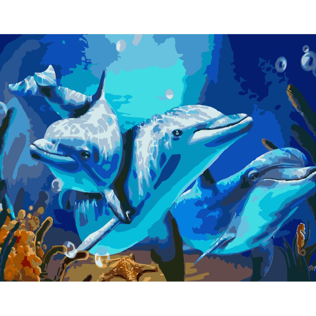 Картина за номерами Strateg ПРЕМІУМ Дружелюбні дельфіни розміром 40х50 см (GS386)