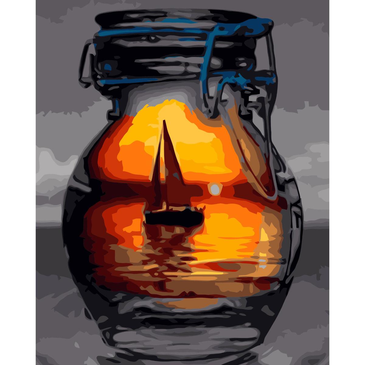 Картина за номерами Strateg ПРЕМІУМ Човник у склянці з лаком розміром 40х50 см VA-3758