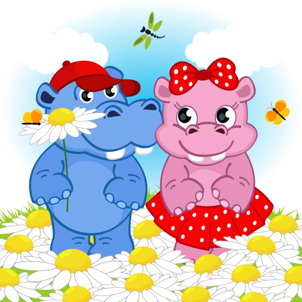 Картина по номерам Strateg ПРЕМИУМ Любовь бегемотов с лаком и с уровнем размером 30х30 см (ES177)<\/p>