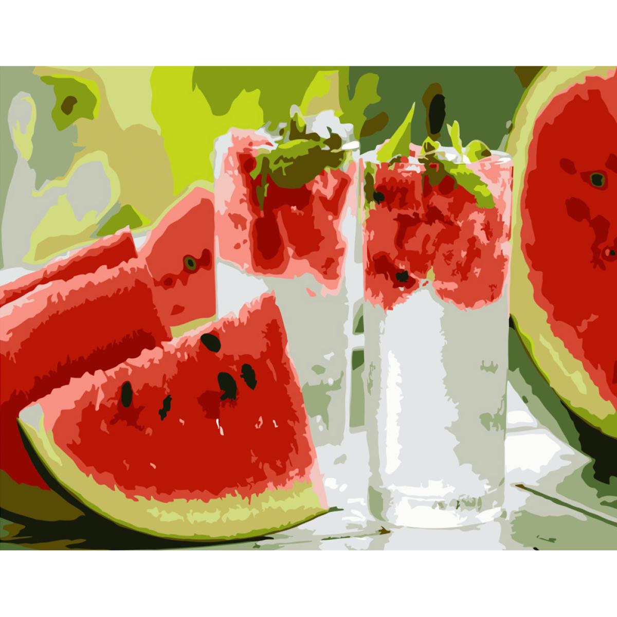 Картина за номерами Strateg ПРЕМІУМ Напої та кавун розміром 40х50 см (DY232)<\/p>\n