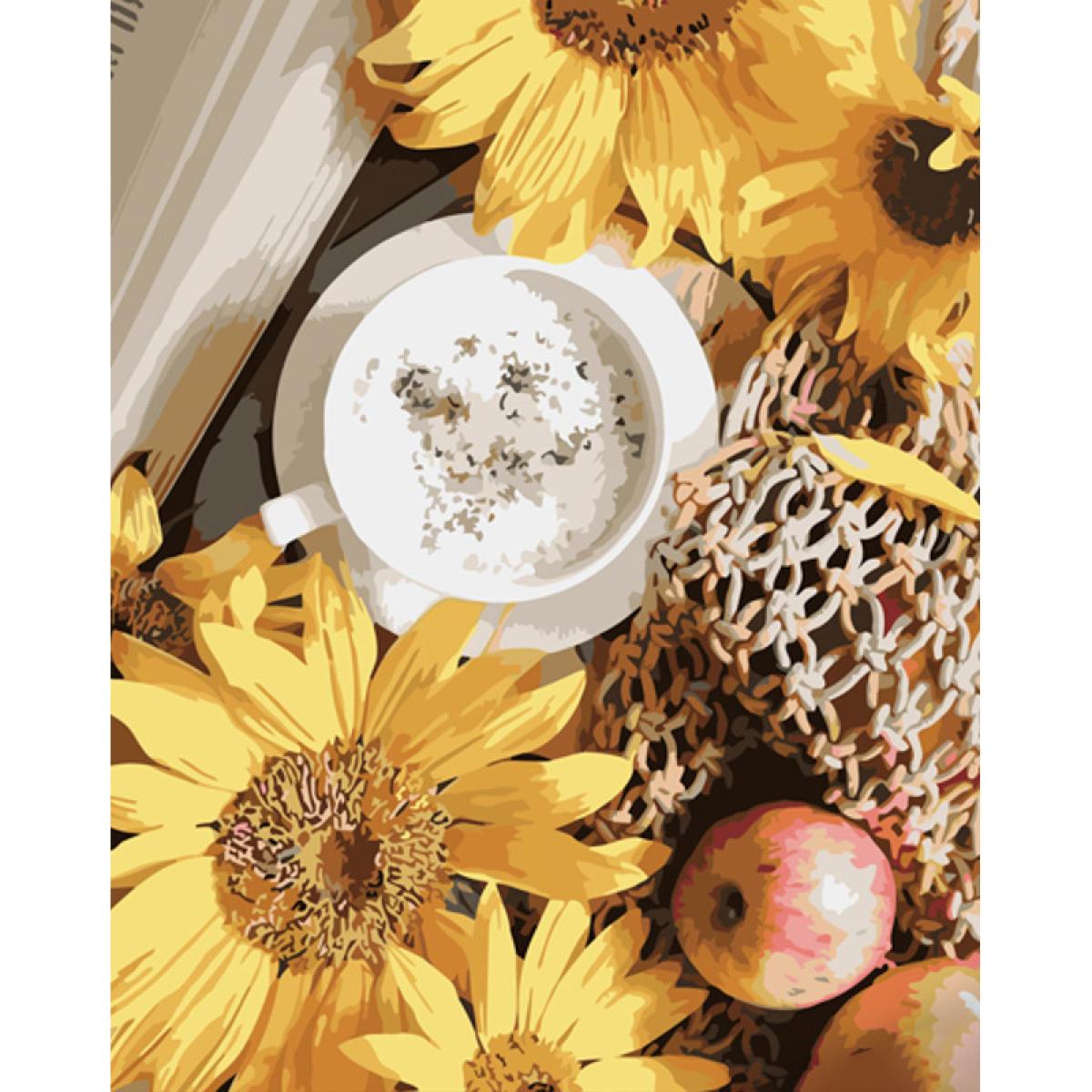 Картина за номерами Strateg ПРЕМІУМ Напій біля соняшників з лаком та з рівнем розміром 40х50 см (GS1360)<\/p>