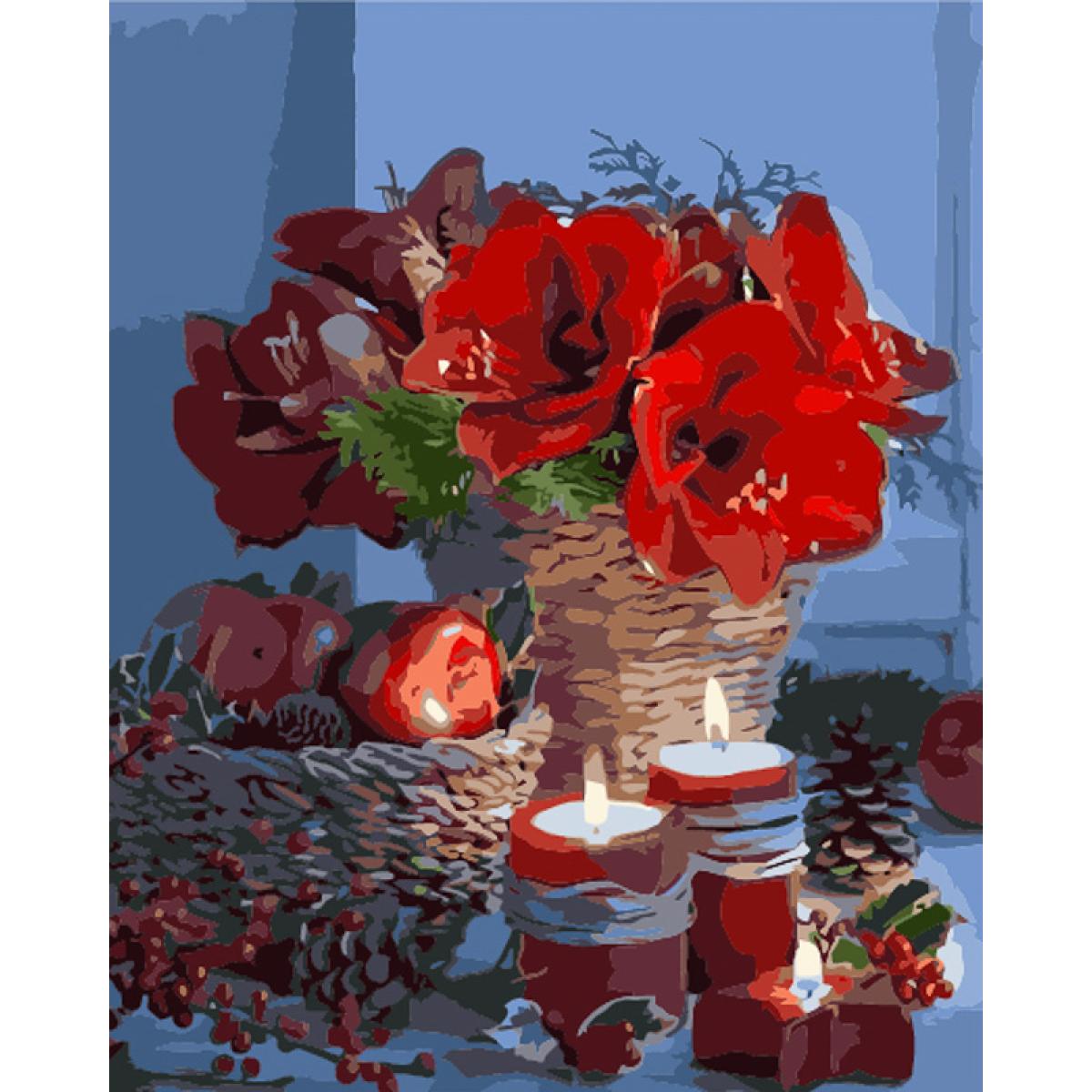 Картина за номерами Strateg ПРЕМІУМ Новорічні свічки з лаком та з рівнем розміром 40х50 см (GS1584)<\/p>