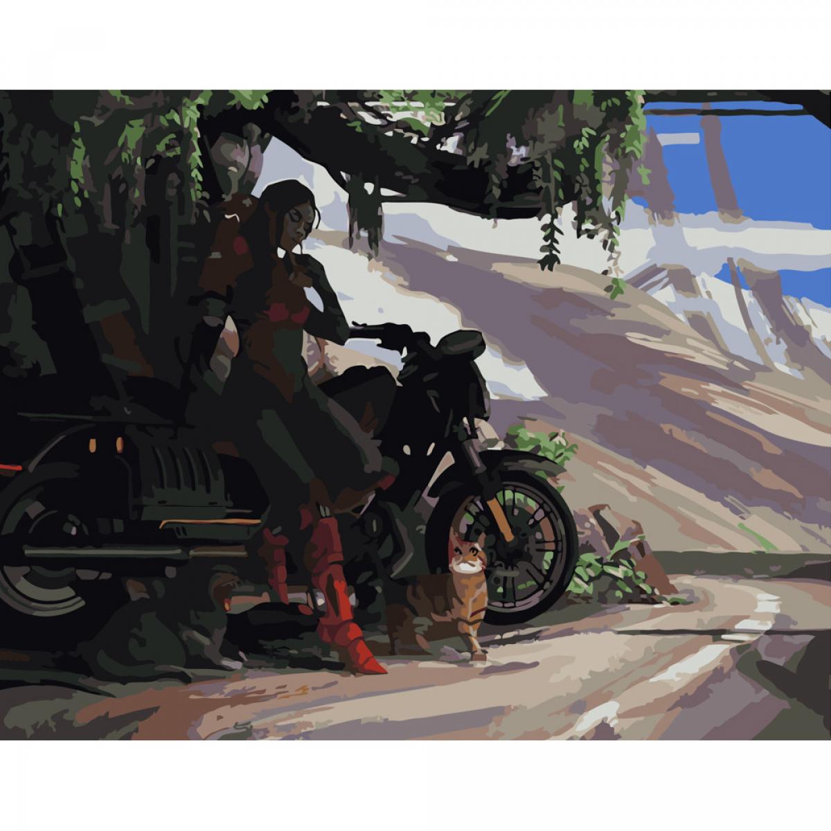 Картина за номерами Strateg ПРЕМІУМ Відпочинок на мотоциклі розміром 40х50 см (GS390)