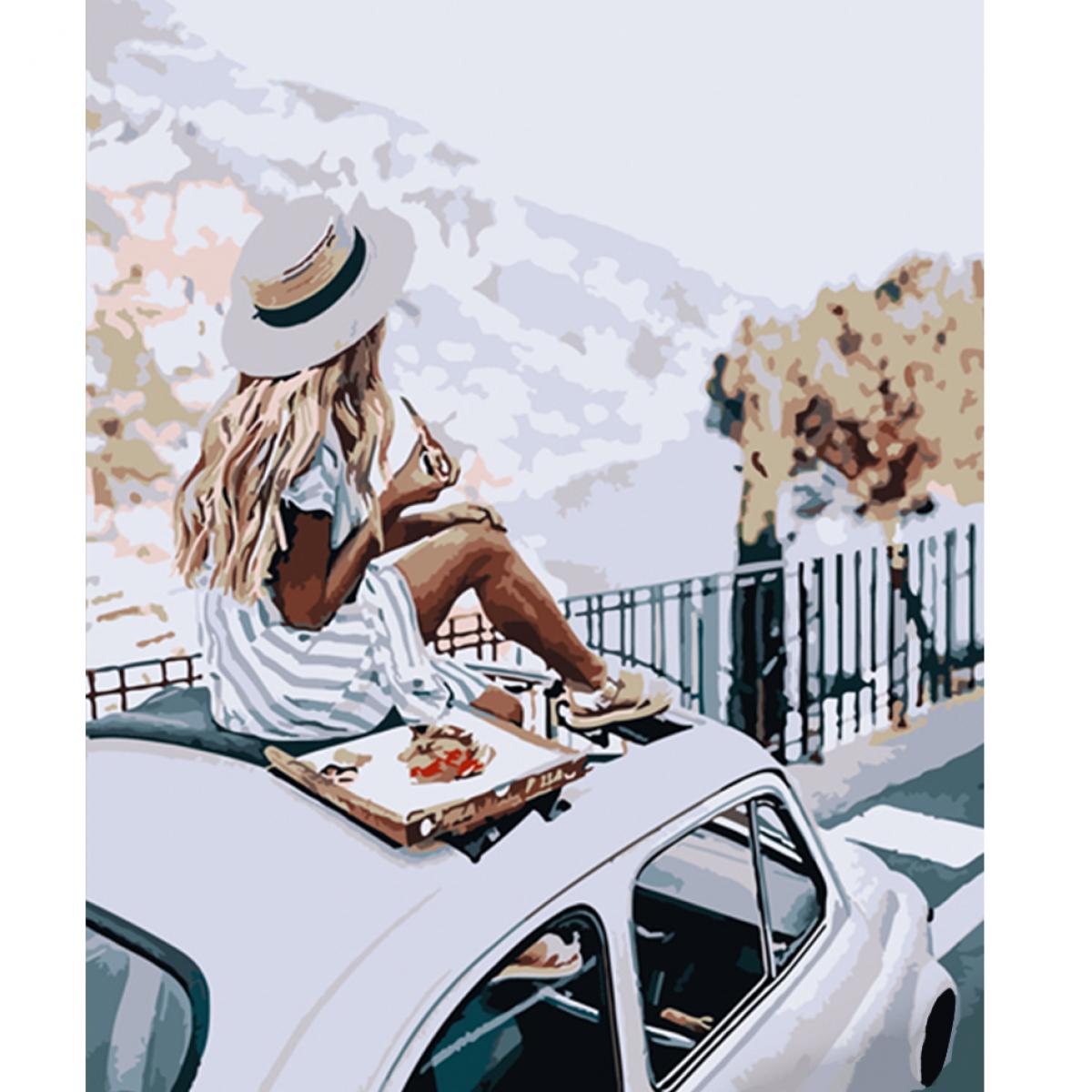 Картина за номерами Strateg ПРЕМІУМ Перекус на даху машини розміром 40х50 см (HH063)<\/p>\n