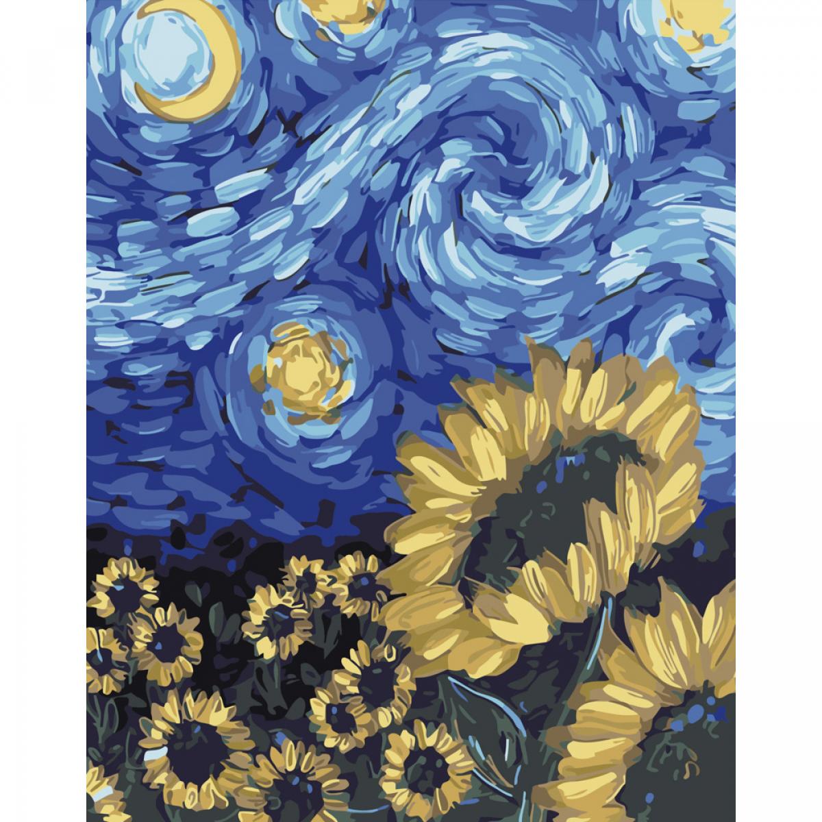 Картина за номерами Strateg ПРЕМІУМ Соняшники у стилі Ван Гога розміром 40х50 см (DY271)