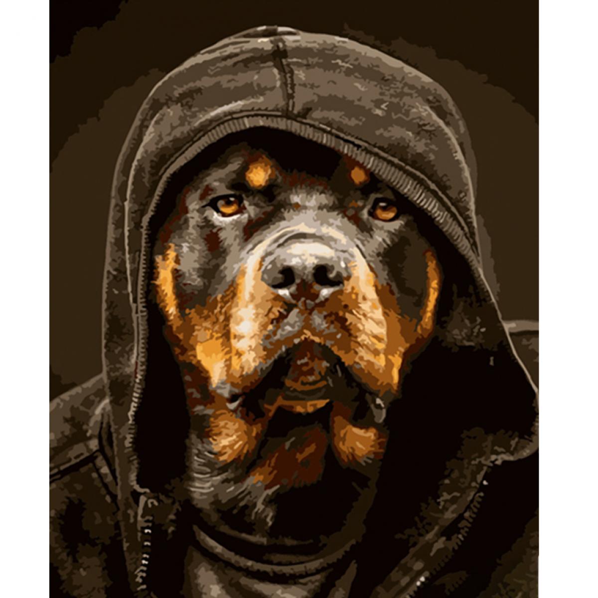 Картина за номерами Strateg ПРЕМІУМ Ротвелер у капюшоні розміром 40х50 см (HH038)<\/p>\n