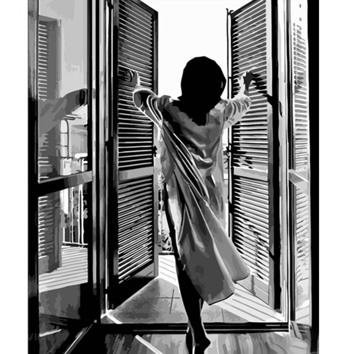 Картина за номерами Strateg ПРЕМІУМ Ранок біля вікна розміром 40х50 см (HH073)<\/p>\n