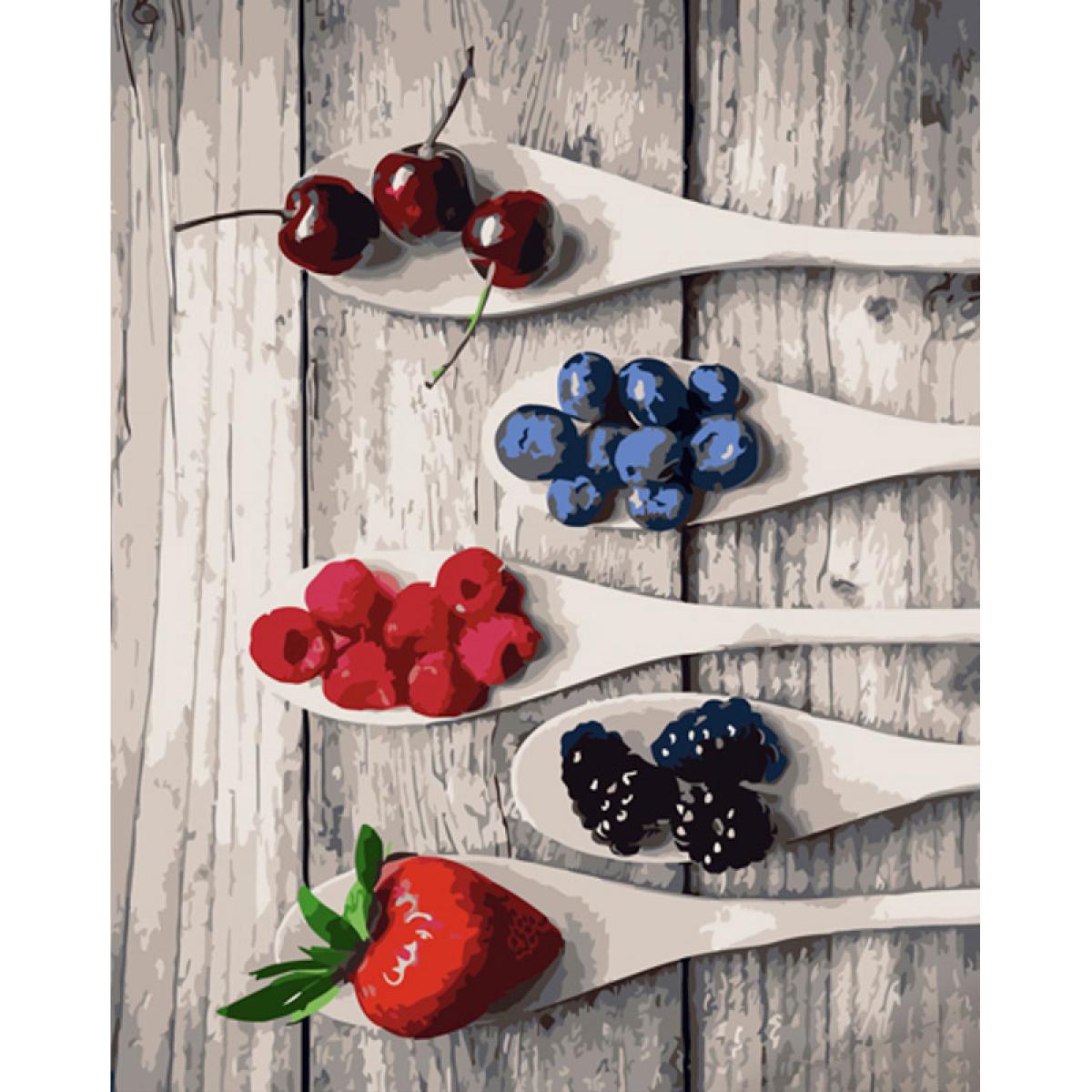 Картина за номерами Strateg ПРЕМІУМ Ягідний мікс з лаком та з рівнем розміром 40х50 см (GS1388)