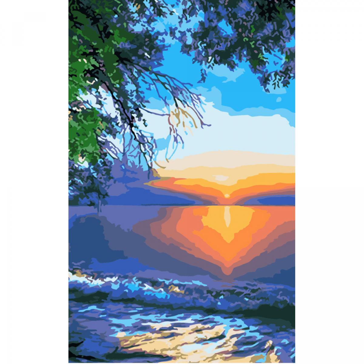 Картина за номерами Strateg ПРЕМІУМ Захід сонця біля води розміром 50х25 см (WW036)<\/p>\n