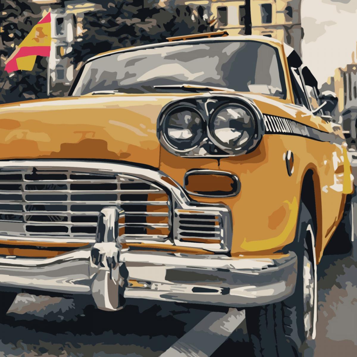 Картина за номерами Strateg ПРЕМІУМ Жовта ретро машина розміром 40х40 см (SK005)<\/p>\n