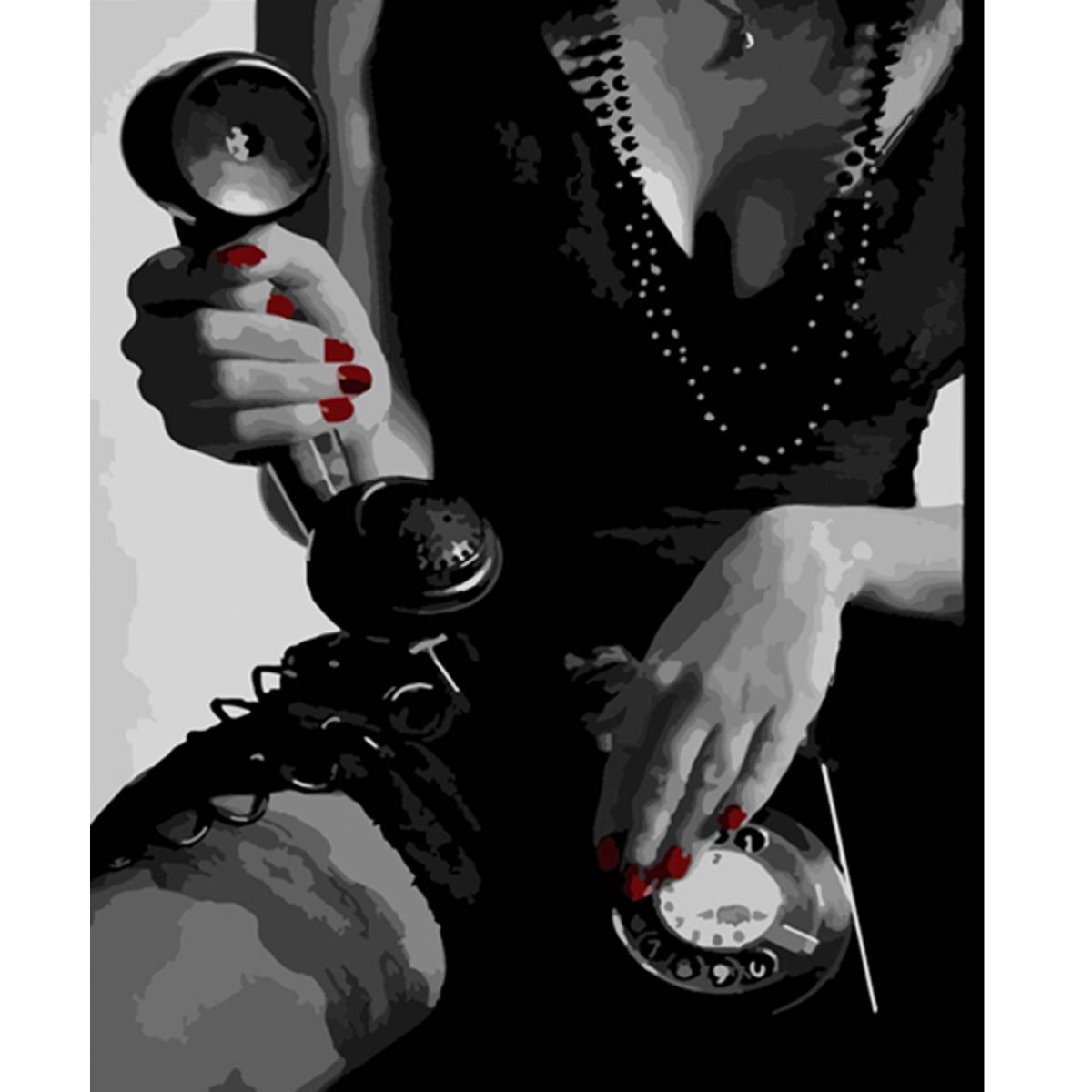 Картина за номерами Strateg ПРЕМІУМ Жінка з телефоном розміром 40х50 см (HH035)