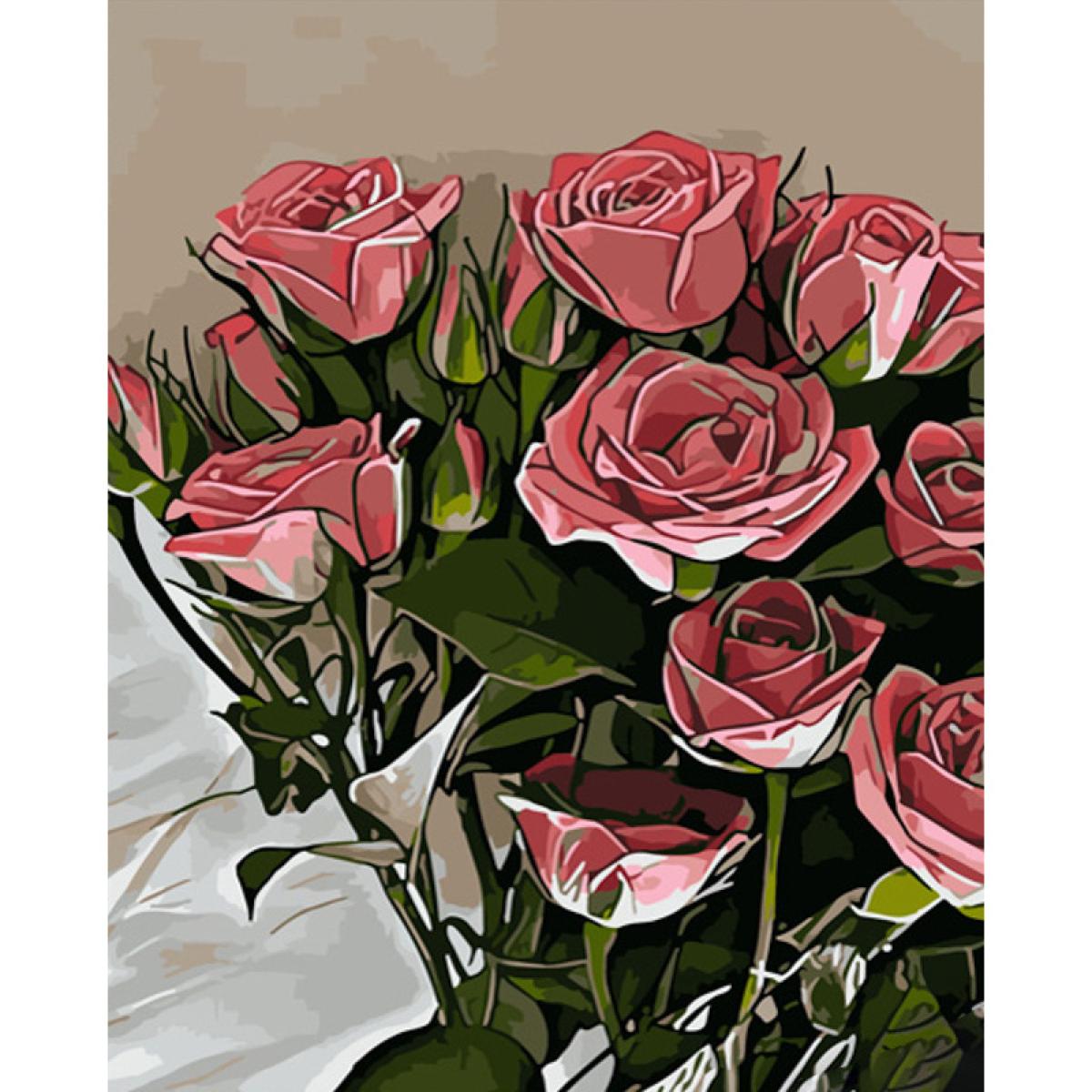 Картина за номерами Strateg ПРЕМІУМ Рожеві троянди розміром 40х50 см (GS757)<\/p>\n