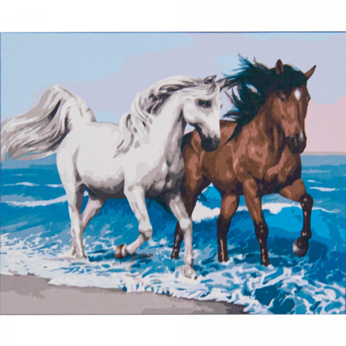 Картина за номерами Strateg Двоє коней на березі моря на кольоровому фоні розміром 40х50 см (VA-2531)<\/p>