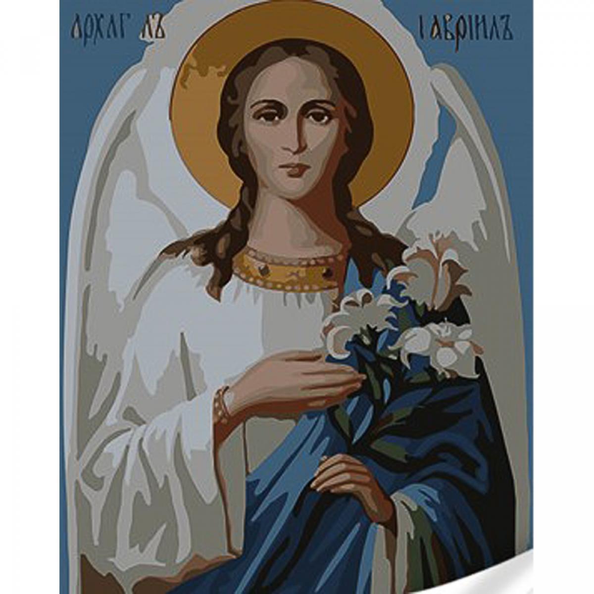 Картина за номерами Strateg ПРЕМІУМ Архангел Гавриїл з лаком та з рівнем розміром 30х40 см (SS1110)