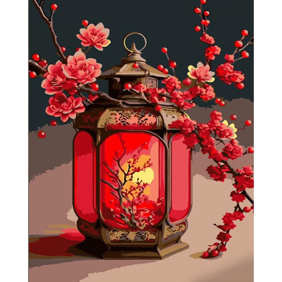 Картина за номерами Strateg ПРЕМІУМ Червоний ліхтарик розміром 40х50 см (DY407)