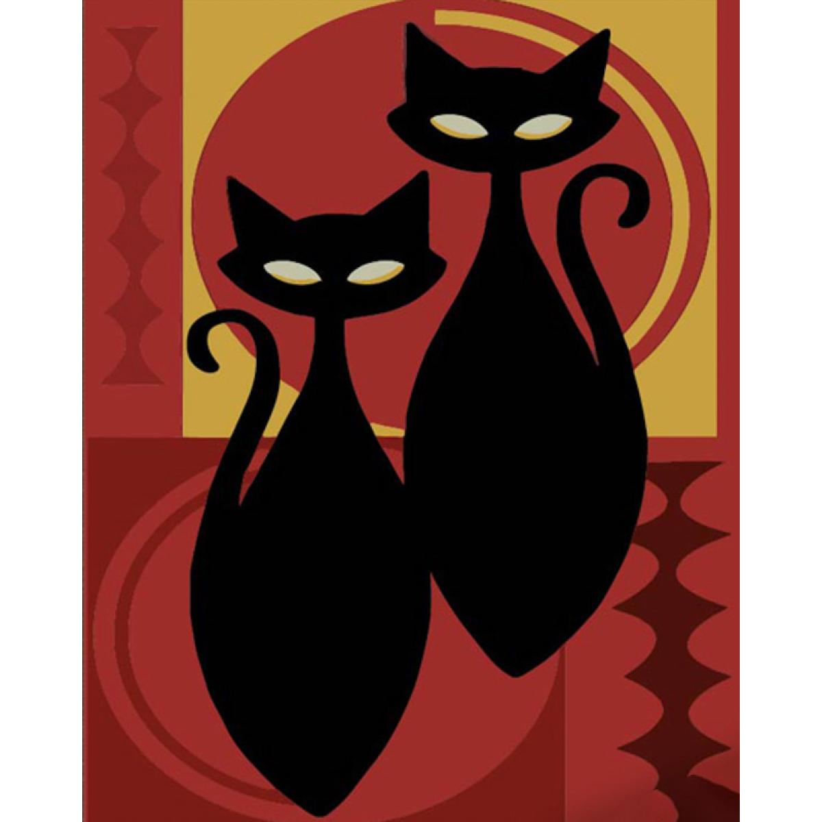 Картина за номерами Strateg ПРЕМІУМ Два абстрактні котики розміром 40х50 см (DY440)