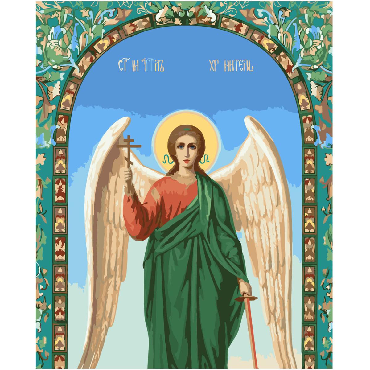 Картина за номерами Strateg ПРЕМІУМ Ікона Ангел Охоронець з лаком розміром 40х50 см SY6702