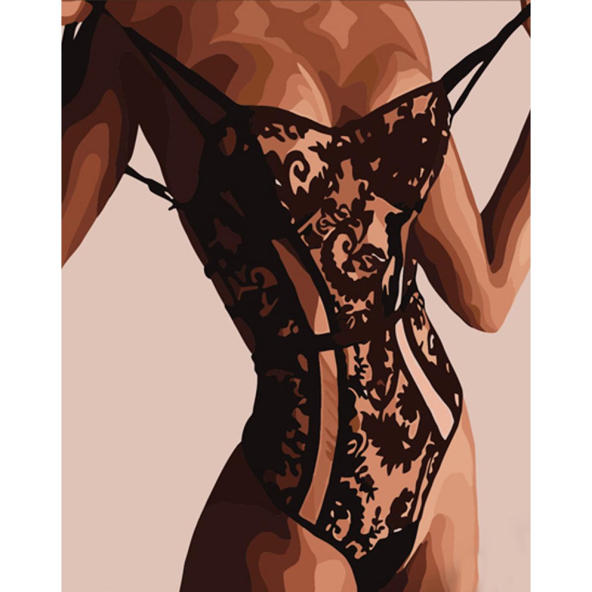 Картина за номерами Strateg ПРЕМІУМ Мереживне боді розміром 40х50 см (DY399)<\/p>\n