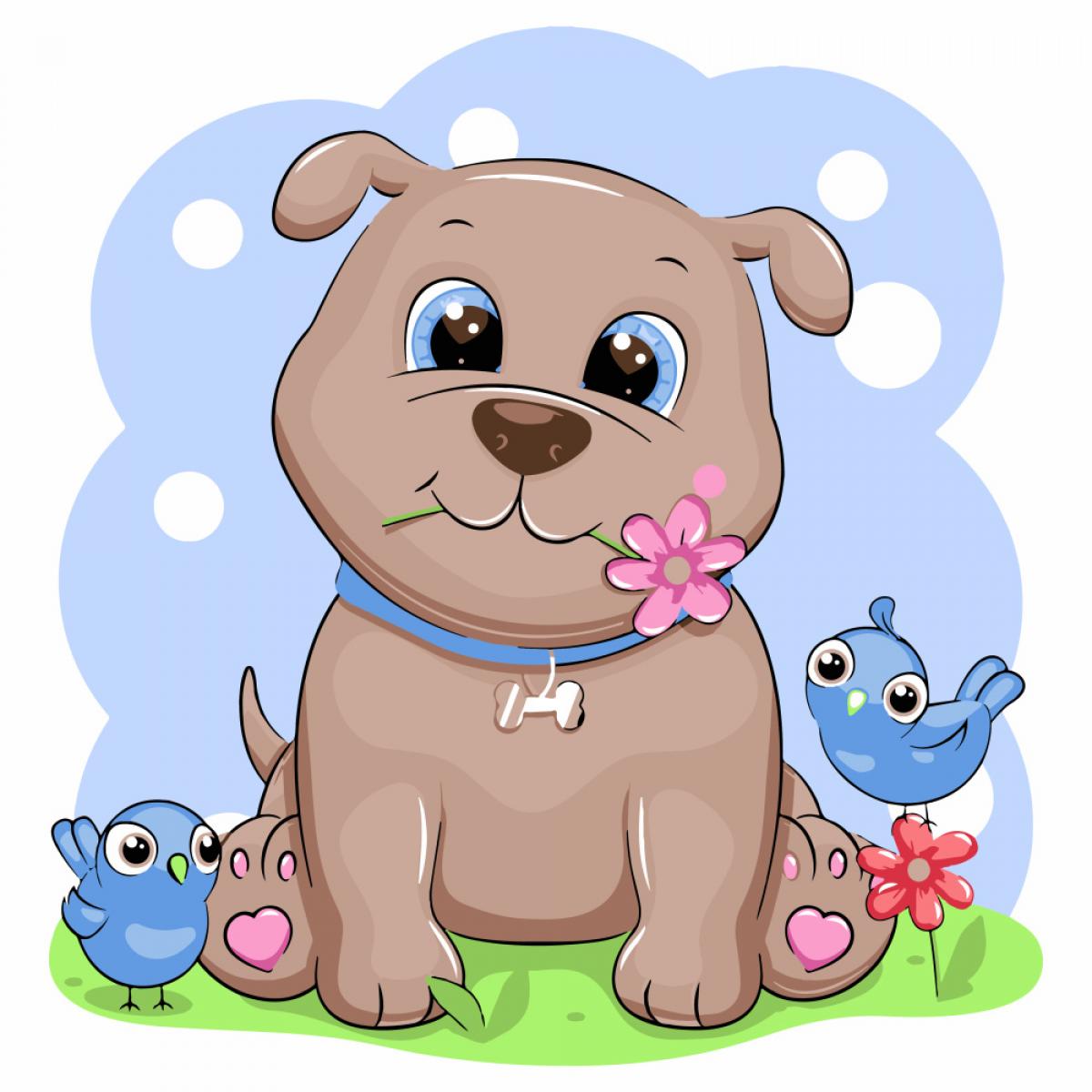 Картина по номерам Strateg ПРЕМИУМ Собачка с птицами с лаком и с уровнем размером 30х30 см (ES-0845)<\/p>