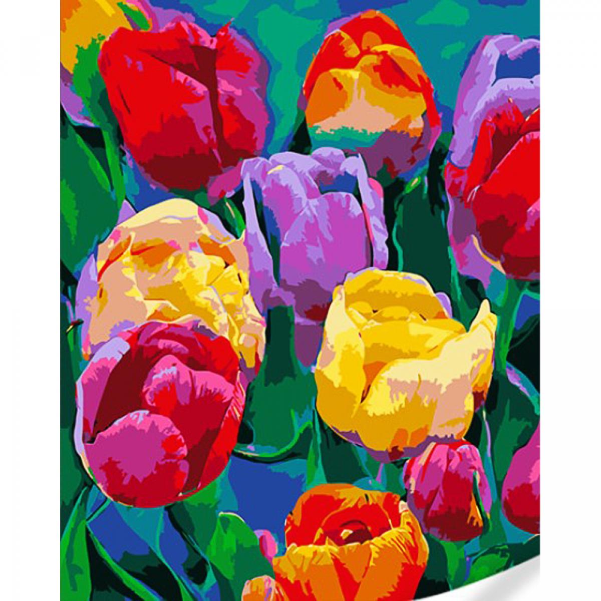 Картина за номерами Strateg Тюльпаны поп-арт на кольоровому фоні розміром 40х50 (GS1625)