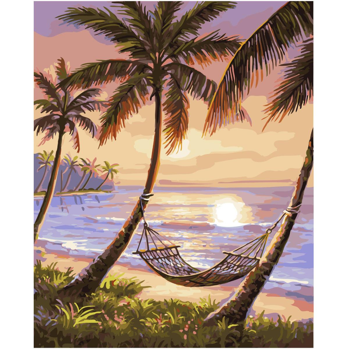 Картина за номерами Strateg ПРЕМІУМ Відпочинок в гамаку з лаком розміром 40х50 см SY6591<\/p>\n