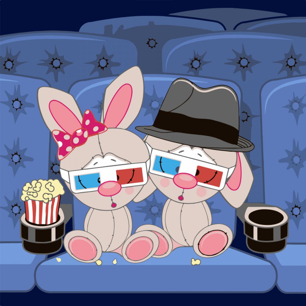 Картина по номерам Strateg ПРЕМИУМ Зайчата в кинотеатре с лаком и с уровнем размером 30х30 см (ES-0804)