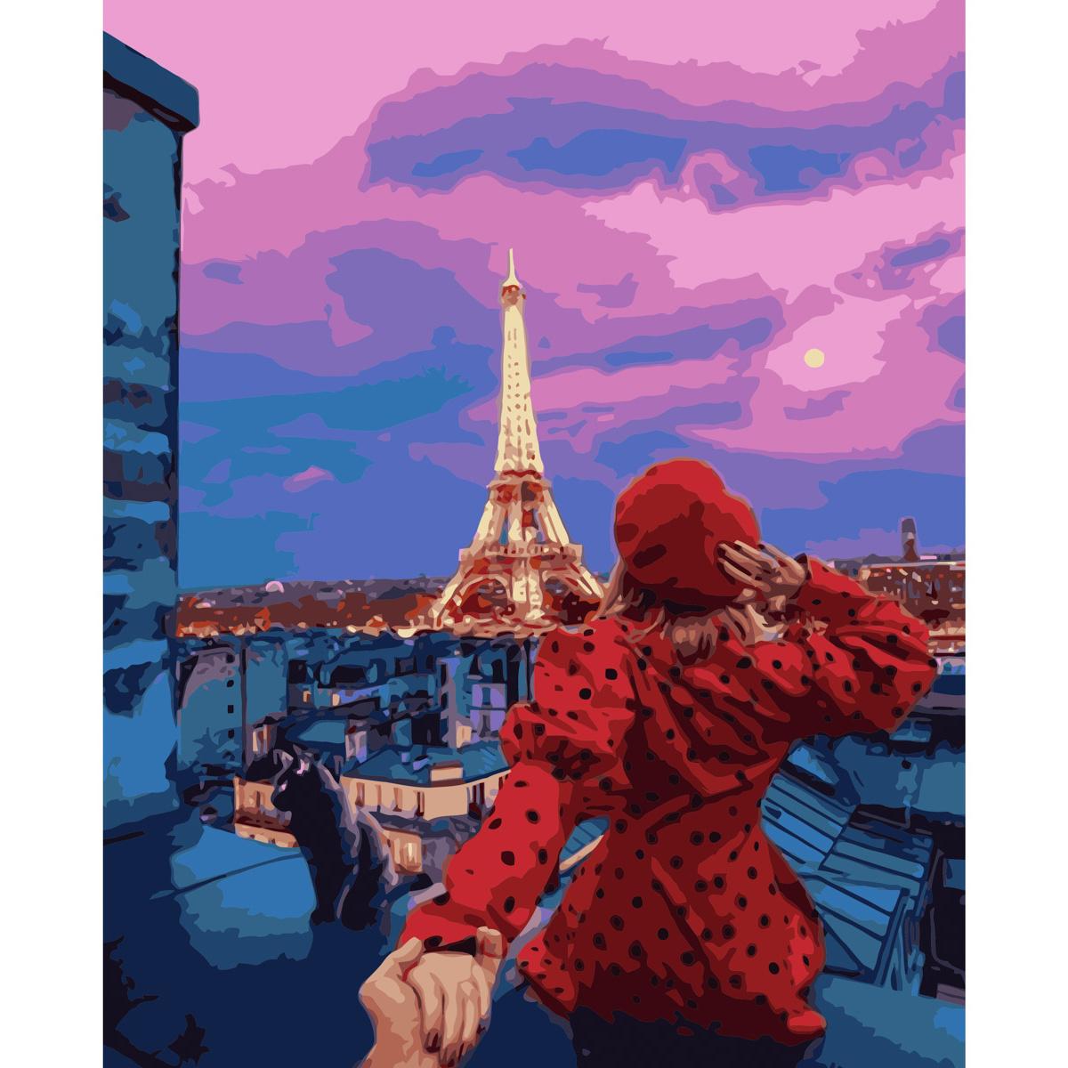 Картина по номерам Strateg ПРЕМИУМ Закат над Парижем с лаком размером 40х50 см VA-1231<\/p>\n