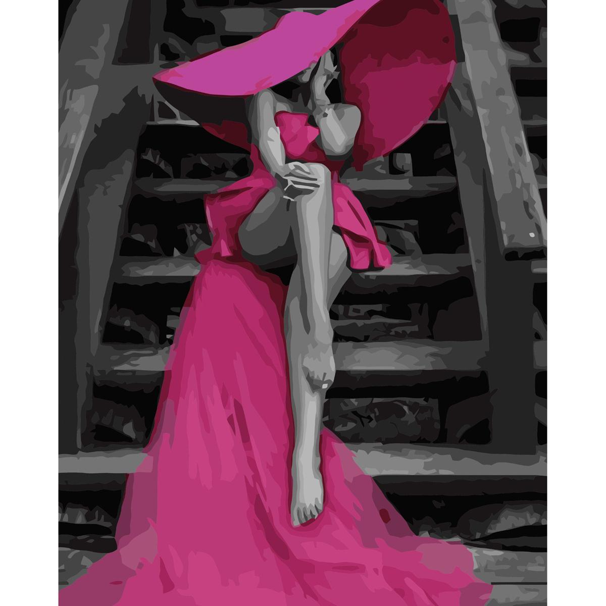 Картина по номерам Strateg ПРЕМИУМ Розовое платье и шляпа с лаком размером 40х50 см VA-3671