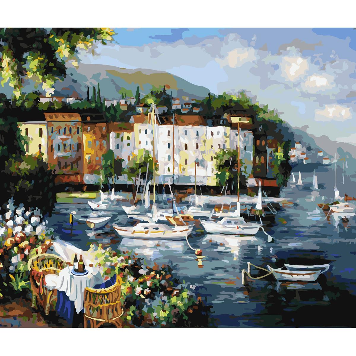 Картина за номерами Strateg ПРЕМІУМ Затишна бухта з лаком розміром 40х50 см (SY6623)