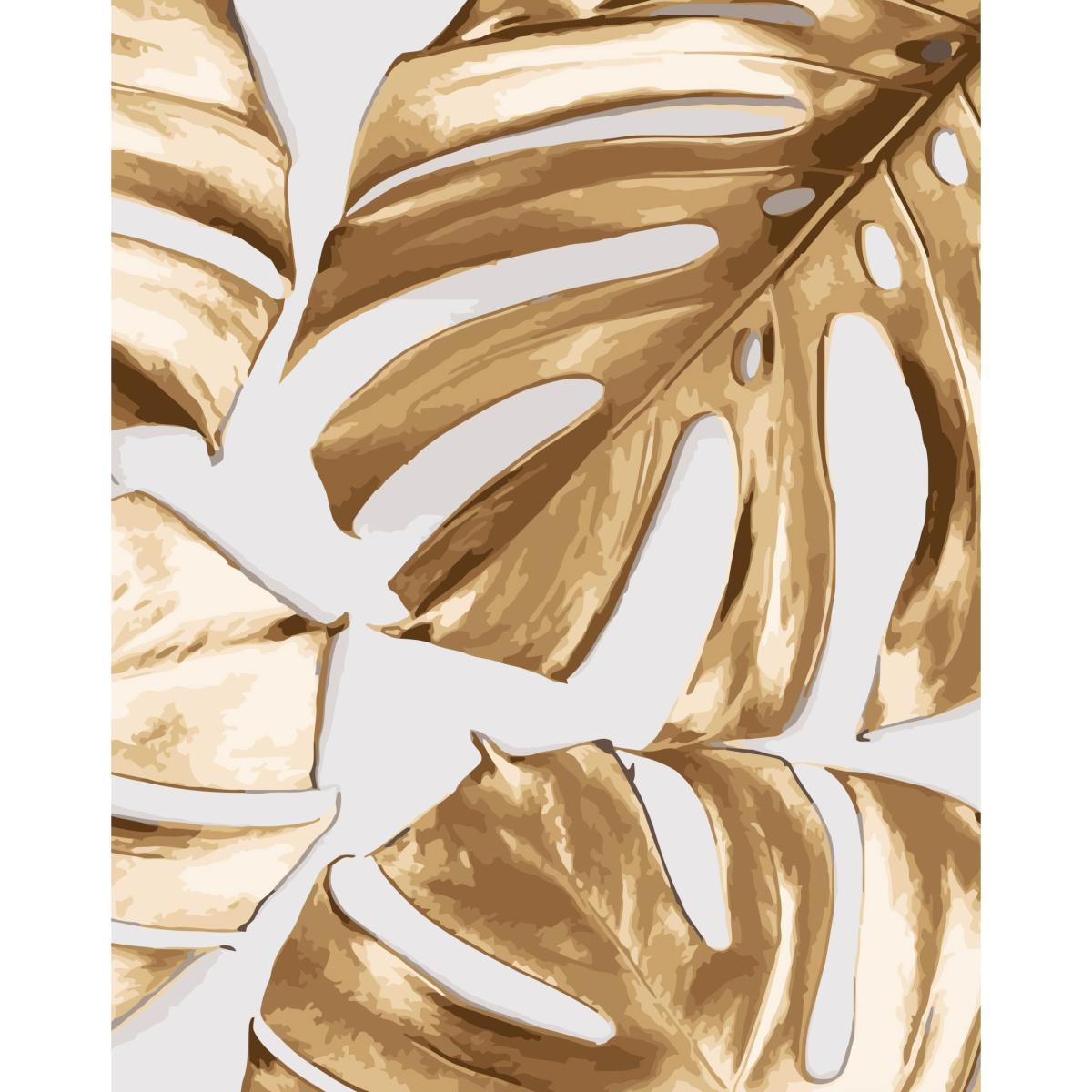 Картина за номерами Strateg ПРЕМІУМ Золоті листки монстери на білому з лаком розміром 40х50 см (SY6788)