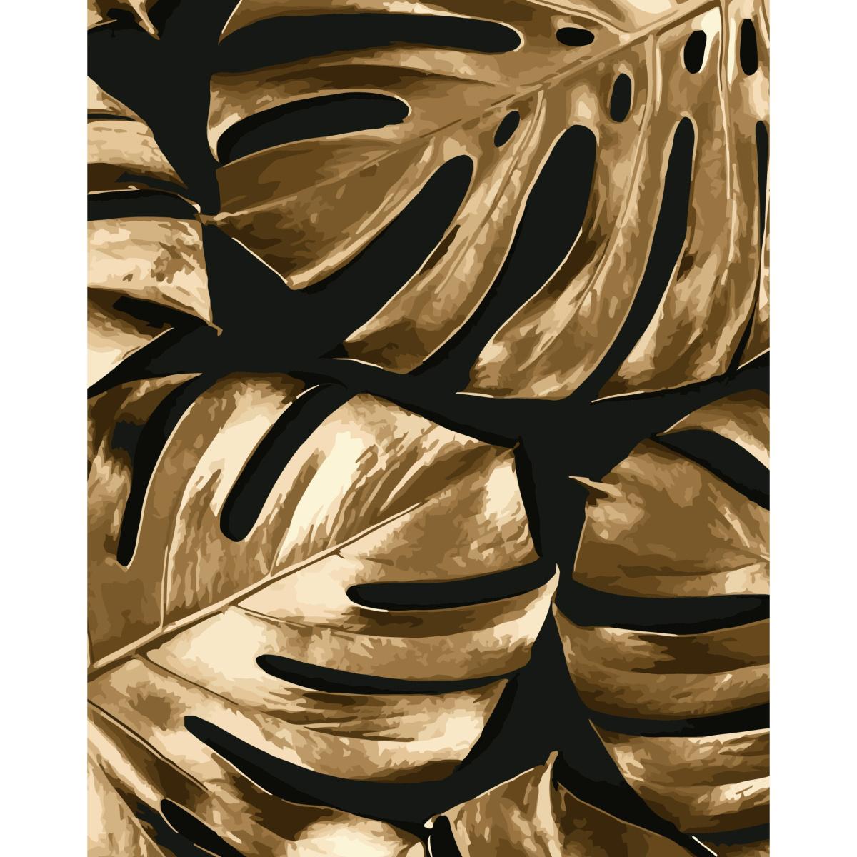 Картина за номерами Strateg ПРЕМІУМ Золоті листки монстери на чорному з лаком розміром 40х50 см (SY6786)