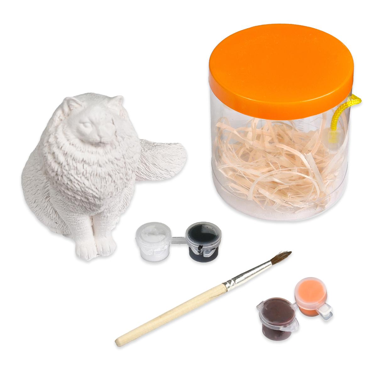 В наборе — гипсовая фигурка котика и краски, чтобы разрисовать ее по своему вкусу. Прекрасное развлечение и яркий подарок.