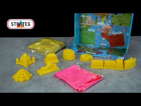 Малюків чекає захоплююча подорож земною кулею та знайомство з пам'ятками різних країн на 3D ігровому полі. І найцікавіше – самі чудеса світла та будівлі для гри дитина може виліпити сама! Будівлі можна збудувати з кінетичного піску – у наборі упаковка в 1 кг цього дивовижного матеріалу. Для виготовлення будівельних блоків та будівель у наборі є дев'ять різних формочок – від Колізею та Сфінкса до Парфенону та Великої китайської стіни.<\/p>\n