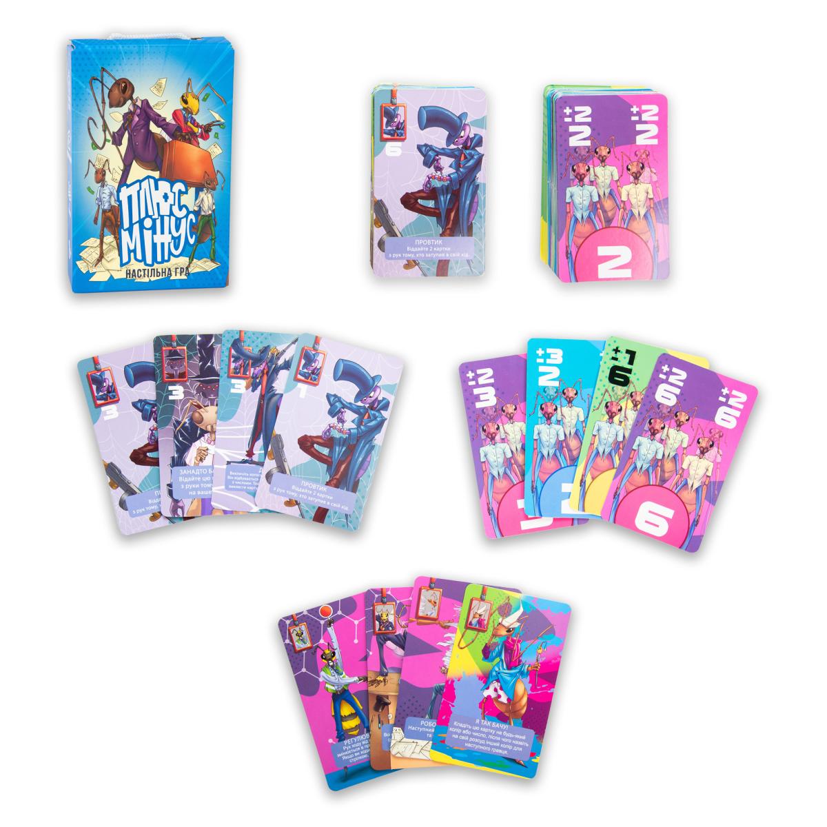 Настольная игра Strateg Плюс Минус развлекательная на украинском языке (30292)\nОкунись в суровую карьерную гонку и пойди головами. Завершив все задания, пройди все испытания и выдержи основания от других, останься без карты, гордо носи звание победителя и начинай снова. Не кооперативная игра, игра на логику и расчет, внимательность, проницательность и все остальные чувства. Ваша задача – победить любым методом.\nКомплектация игры: картонная коробка размером 18 х 12 х 4,5 см, 144 игральные карточки, бумажная инструкция.\nВес игры в коробке: 400 г (+- 20 г).\nРекомендуемый возраст: 8 лет.\nКоличество игроков: от 2 до 5.\nИгра на украинском языке.